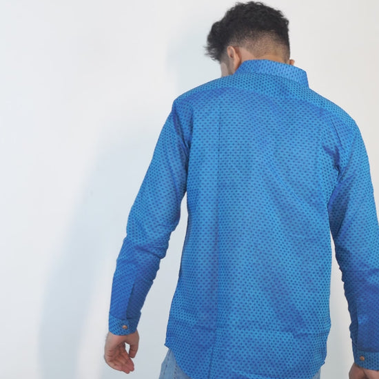 Classic Blue Khadi Cotton Printed Shirt for Men